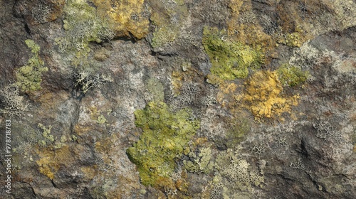 © Mykhailo Podolian, Obraz premium Lichen-covered rock formation showcasing vibrant colors and textures in a natural setting