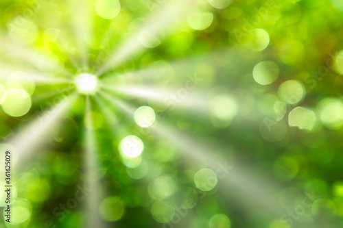 Obraz premium Lichtreflexe der Sonne erzeugen Muster, die einen unscharfen Hintergrund bilden.