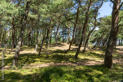 Fototapeta premium Lichtspiel im Küstenschutzwald an der polischen Ostseeküste bei Wladyslawowo