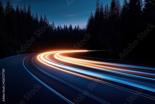 © Patrick Louvet, Naklejka premium Lichtspuren auf einer kurvigen Straße bei Nacht
