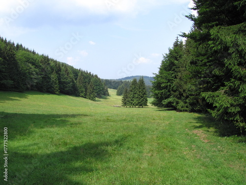 Naklejka premium Lichtung im Fichtenwald im Thüringer Wald