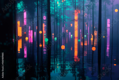 © felix_brönnimann, Obraz premium Lichtwald Nacht