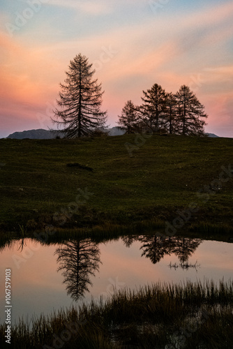 Fototapeta premium Lienzer Dolomiten - Osttirol - Sonnenuntergang - Spiegelung