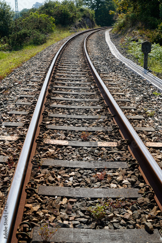 © JuanFrancisco, Fototapeta premium Life goes by on dark train tracks