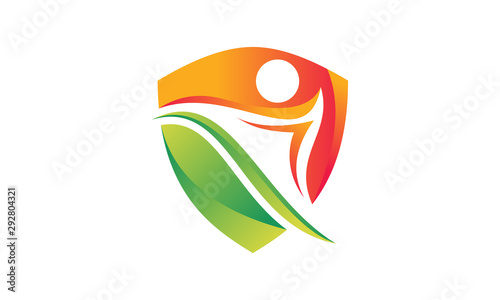 © agusta, Obraz premium Life Insurance, people shield icon. Vector flat style illustration Abstract business security Agency logo template.