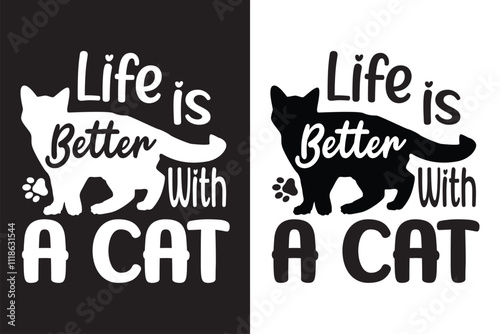 Fototapeta premium Life Is Better with a cat typography t-shirt design.