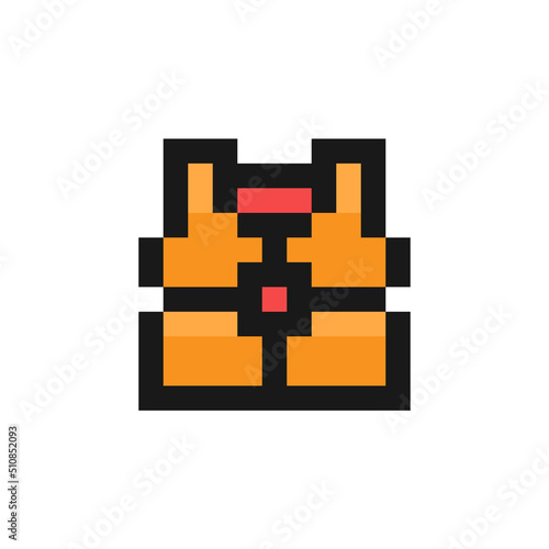 © Derter, Fototapeta premium Life vest icon in pixel art design isolated on white background, life jacket vector sign symbol
