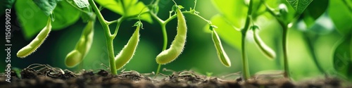 © Popelniushka, Naklejka premium Lifecycle Progression of Bean Plant: Stages of Growth and Root Development in the Fabaceae Family