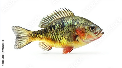 © Vitalii But, Fototapeta premium lifelike depiction showcases a Bluegill Lepomis macrochirus featuring vibrant colors and intricate fin details. Its form highlights the beauty of aquatic life.