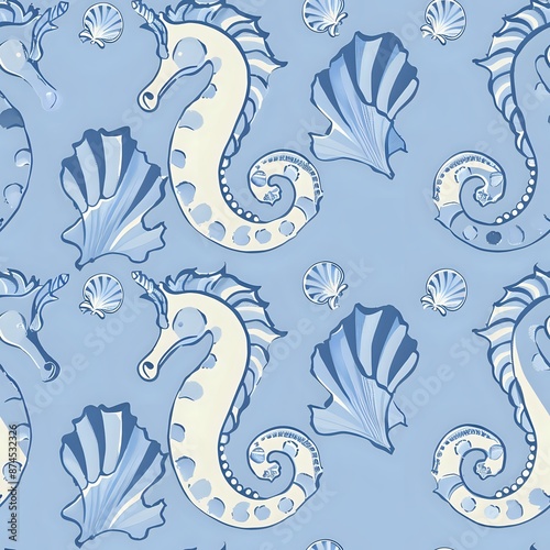 Fototapeta premium Lifelike Seahorse and Marine Life Elements Pattern