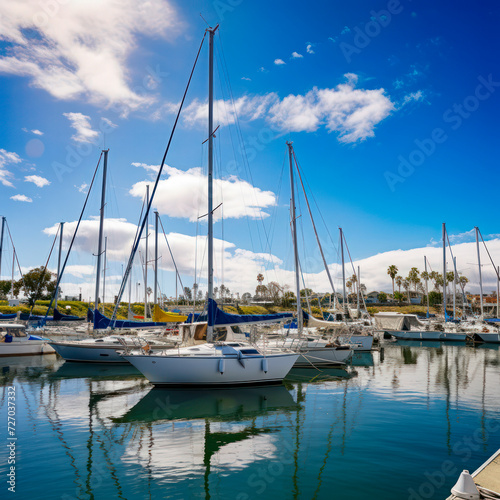 Fototapeta premium lifestyle photo sailboats anchored in a harbor.