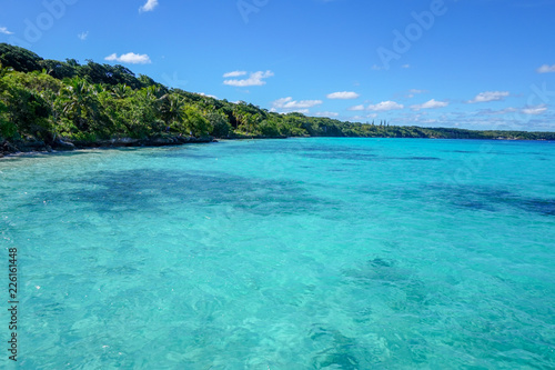 Fototapeta premium Lifou's bright blue waters along the treeline