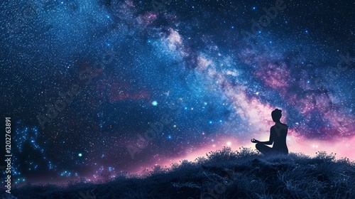 Obraz premium Light and balanced energy fields around a meditating figure with the Milky...
