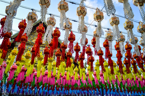 Fototapeta premium Light and Color in colorful​ Lantern​ Festival​ at Wat Phra That Hariphunchai in Lamphun, Thailand, South East Asia