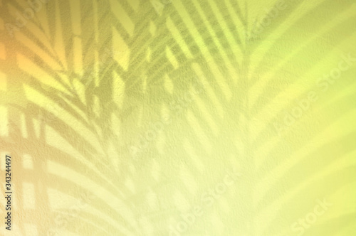 © nongnuch_l, Fototapeta premium Light and shadow green leaves,palm leaf on colorful grunge wall concrete background.Silhouette flat lay abstract tropical leaf natural pattern summer texture with copy space.Soft image backdrop.