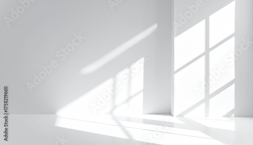 Fototapeta premium Light and shadows create patterns on a bright white room