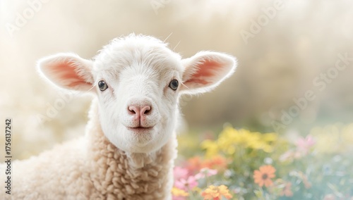 Obraz premium Light background featuring an Easter lamb