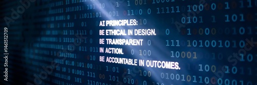© happie, Obraz premium Light beam shining through binary fog revealing "AI Principles: Be ethical, transparent, accountable" – Ideal for educational content, tech ethics, or digital responsibility branding.