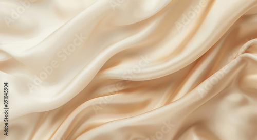 Fototapeta premium Light Beige Gradient Background, Vanilla Toned Blurry Cosmetics Backdrop, Smooth Silk Fabric Texture