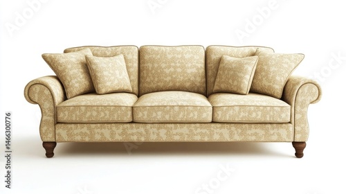 © Talha, Fototapeta premium Light beige sectional sofa isolated on white