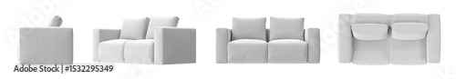 © changnam37, Obraz premium light beige velvet sofa furniture multiple view isolated.