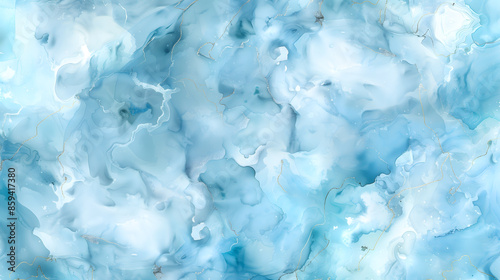 Obraz premium Light Blue and Silver Alcohol Ink Clouds