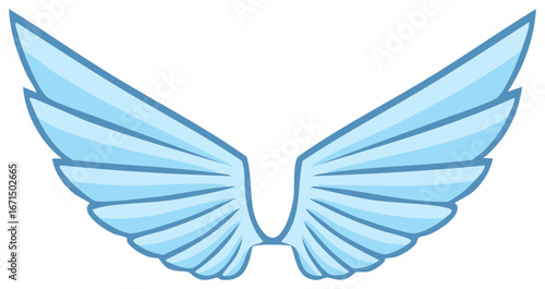 Obraz premium Light Blue Angel Wings Open Wide Cartoon Illustration Style Graphic Design...