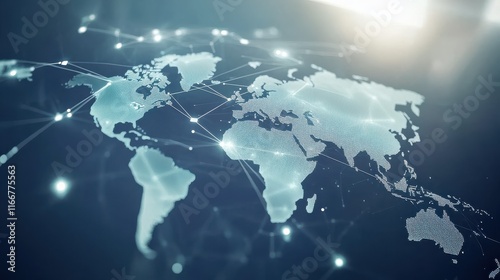 Obraz premium light blue background with a digital world map and global network connections, representing the concept of international business or connectivity