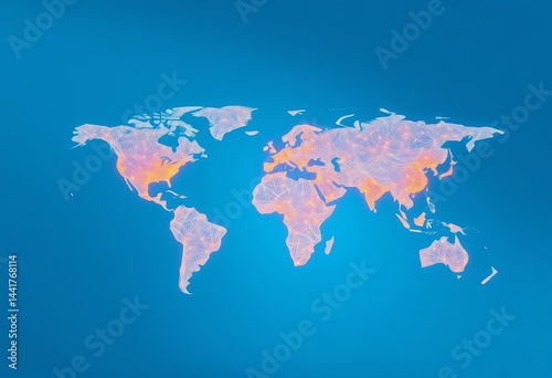 © chanwut, Obraz premium Light blue background, world map with glowing network connections, technology, international network