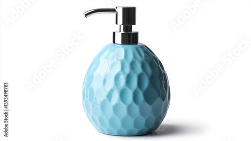 © sablengjago, Obraz premium Light blue ceramic soap dispenser with chrome pump.