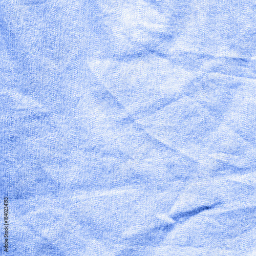 Fototapeta premium Light blue crumpled paper texture background, wrinkled fabric surface, pastel...