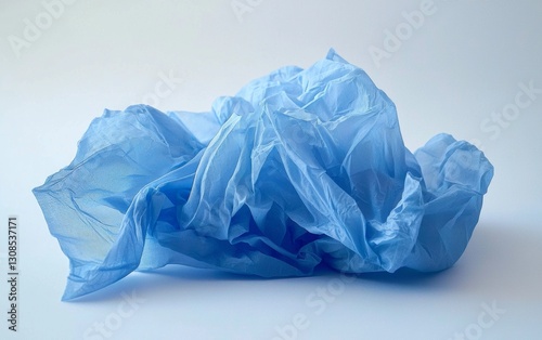 © aleks, Obraz premium Light blue crumpled plastic material on a plain background highlighting texture and form