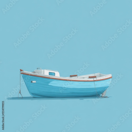 Fototapeta premium Light blue fishing boat illustration