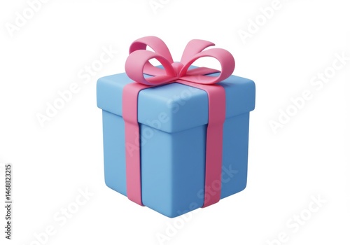 Obraz premium Light Blue Gift Box with Pink Ribbon 3D Render Isolated on White Background