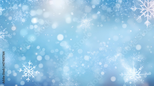 © Massimo Todaro, Naklejka premium light blue gradient background with white snowflakes, Festive Christmas background banner