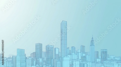 © Raffaza, Naklejka premium Light blue line drawing of a cityscape.