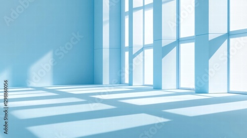 © arisa, Fototapeta premium light blue minimalist room interior with large windows