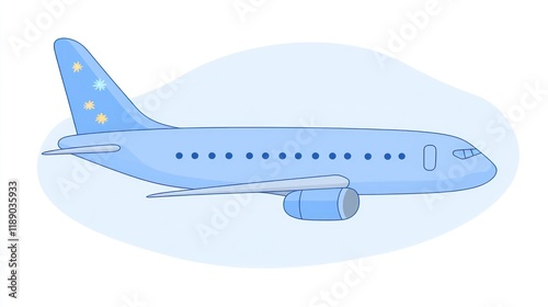 © milenialdesastudio, Fototapeta premium Light blue passenger airplane in flight, side view illustration.