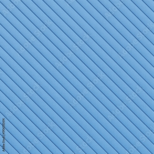 © Cgnomad, Fototapeta premium Light blue quilted fabric texture with diagonal stitched stripes background. 3D rendering illustration