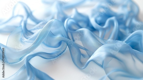 Fototapeta premium Light Blue Ribbon Threads Creating Aerial Circles in Studio Generative AI