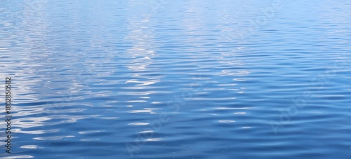 © natalya2015, Naklejka premium Light blue smooth and shiny water surface, natural background