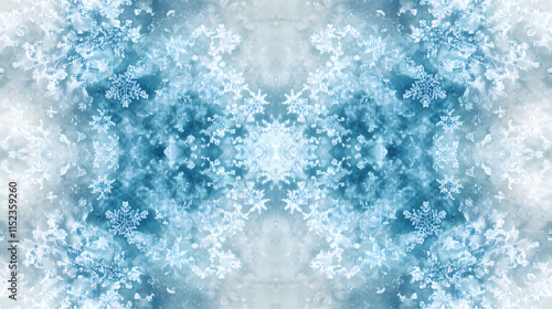 Obraz premium Light blue snowflake pattern on a soft gradient background, representing...