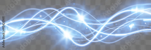 Fototapeta premium Light blue trail wave vector.Glowing smooth curved lines.Laser wave,glowing...