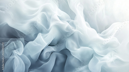 © Shozib, Obraz premium Light blue transparent wavy fabric flowing background texture