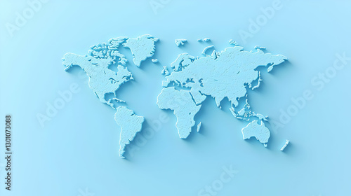 © Maliwan, Fototapeta premium Light Blue World Map with Textured Surface on Soft Color Background
