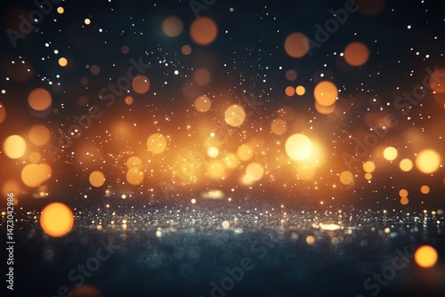 Obraz premium Light bokeh and glitter background with gold sparkle, blur, abstract bright shine and glowing festive mood, perfect for celebration or party themes.
