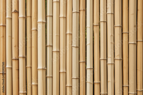 Fototapeta premium Light brown bamboo poles form a vertical textured wall.