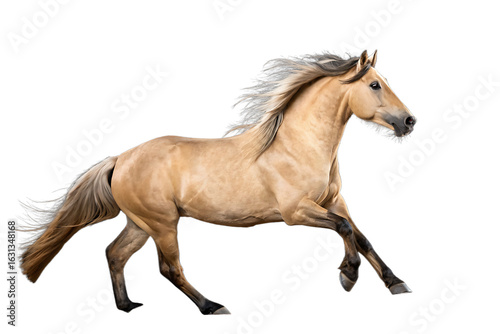 © Mozammel, Naklejka premium Light brown horse stallion running, side profile isolated on transparent background