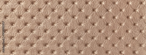 © nikol85, Naklejka premium Light brown leather texture with capitone pattern, macro background of tan retro Chesterfield vintage textile fabric