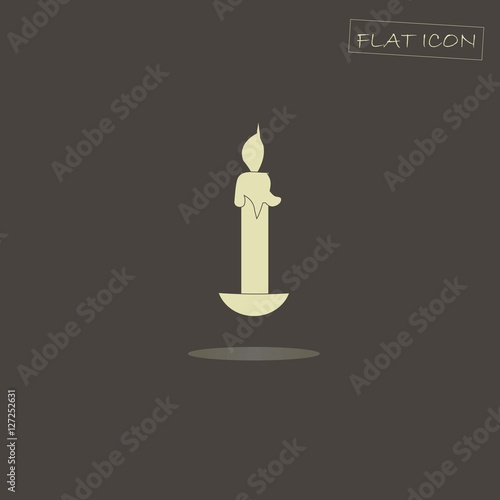 Fototapeta premium Light candle on black, flat icon vector illustration